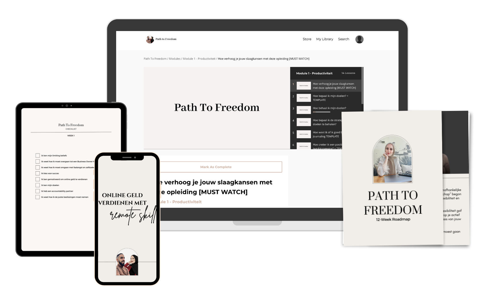 In Path to Freedom krijg je alle tutorials, tools, checklists en stappenplannen om een online business te creëeren van 0, zonder enige voorgaande kennis vereist.